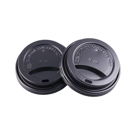 Tapas de café de plástico desechables más vendidas 2025 Diseño negro Resistente al calor Buen sello Tapa de taza para llevar biodegradable