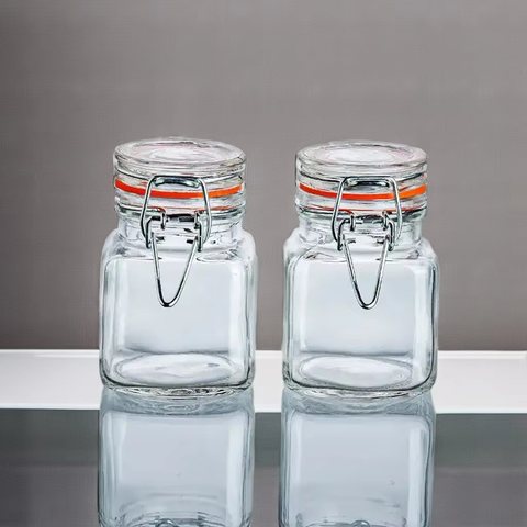 Tarro de especias de vidrio cuadrado transparente de 100ml, Mini caramelo hermético, mermelada de miel, almacenamiento, Clip de bloqueo, tapa de rosca, sellado